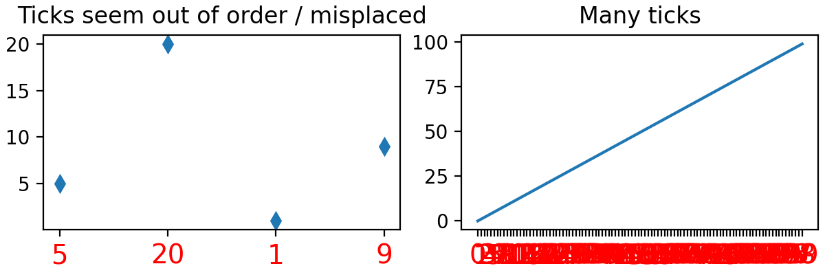 ax[0].set_title('Ticks seem out of order / misplaced')