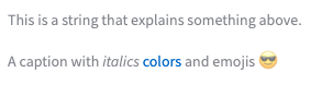 st.caption("A caption with _italics_ :blue[colors] and emojis :sunglasses:")