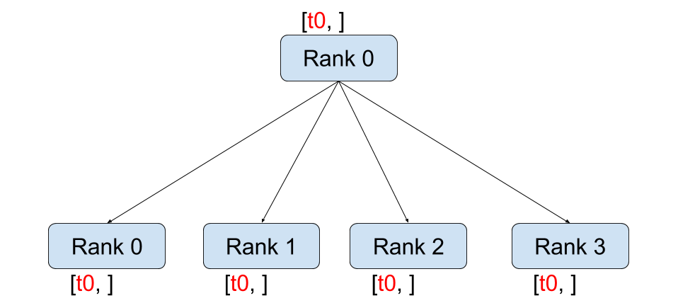 通过TCP初始化可以通过提供排名为0的进程的IP地址和一个可访问的端口号来实现。在这里,所有的工作者将能够连接到排名为0的进程,并交换如何相互访问的信息。