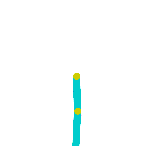 Cosine of theta1:第一个连杆和竖直方向角度的cos值,范围是[-1, 1]。Sine of theta1:第一个连杆和竖直方向角度的sin值,范围是[-1, 1]。Cosine of theta2:第二个连杆相对于第一个连杆的角度的cos值,范围是[-1, 1]。Sine of theta2:第二个连杆相对于第一个连杆的角度的sin值,范围是[-1, 1]。Angular velocity of theta1:第一个连杆相对于竖直方向的角速度,范围是[-4 * pi, 4 * pi]。Angular velocity of theta2:第二个连杆相对于第一个连杆的角速度,范围是[-9 * pi, 9 * pi]。