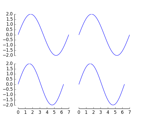 Andrew Straw 增加了将 "轴脊"(表示数据限制的线条)放置在各种任意位置的能力。你的轴线不再局限于图表周围的简单矩形——你可以打开或关闭左、下、右和上方的轴线,还可以 "分离" 轴脊,使其偏离数据。请参阅 脊柱放置 和 matplotlib.spines.Spine。