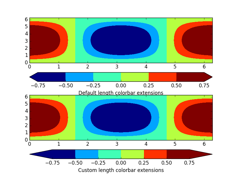 Andrew Dawson 为 colorbar() 添加了一个新的关键字参数 extendfrac,用于控制最小和最大颜色条扩展的长度。