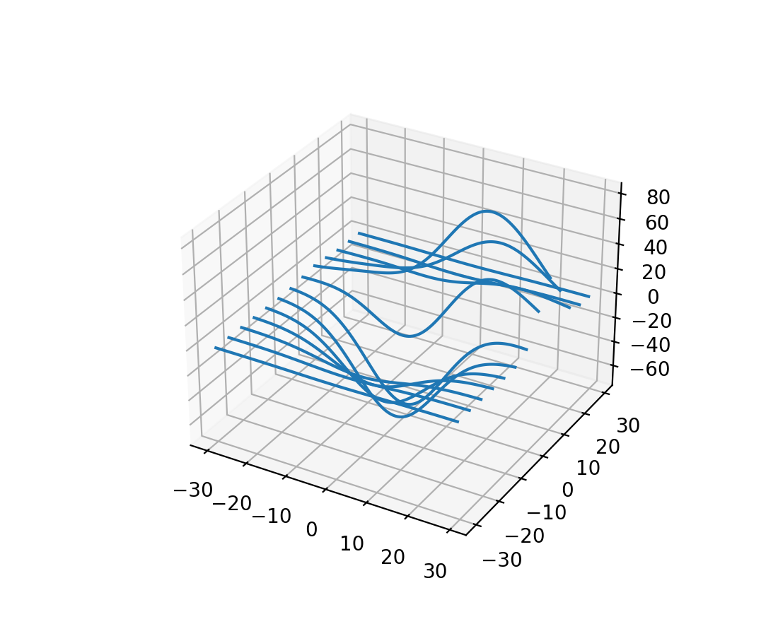 Adam Hughes 为 mplot3d 的 plot_wireframe 添加了支持,使其可以仅绘制行或列的线图。
