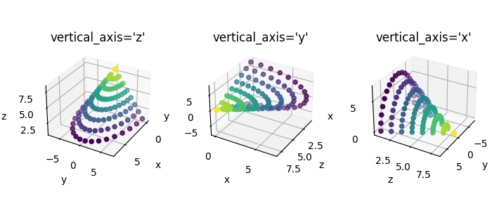 view_init 现在有了参数 vertical_axis,它允许切换哪个轴是垂直对齐的。