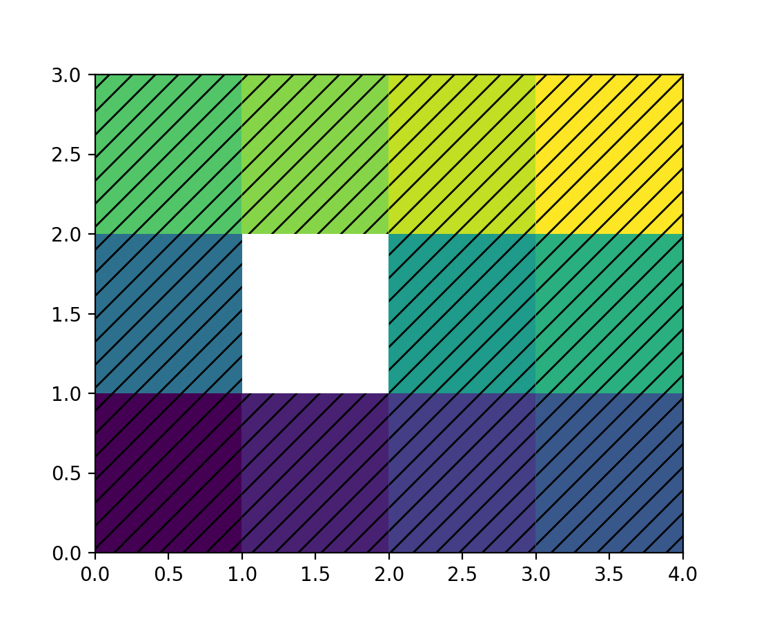 pcolor 之前返回的是一个扁平化的 PolyCollection,其中仅包含有效的多边形(未遮罩)。现在,我们返回一个 PolyQuadMesh,这是一个混合类,结合了二维数组和网格坐标处理的实用性,但仍然继承了 PolyCollection 的绘制方法,这使得在渲染属性上比从 pcolormesh 返回的普通 QuadMesh 有更多的控制。这个新类是 PolyCollection 的子类,因此应该与之前的行为相同。这个新类会为用户跟踪遮罩,并适当地更新发送给渲染器的多边形。