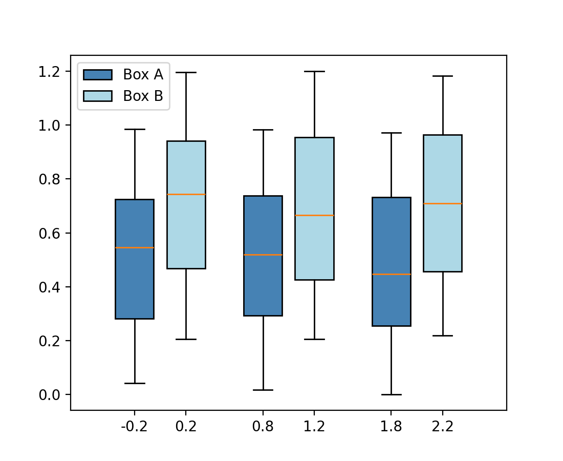 ax.boxplot(data_B, positions=pos + 0.2, patch_artist=True, label='Box B',