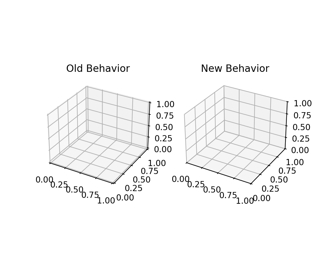 axs[0].set(xlim=(0, 1), ylim=(0, 1), zlim=(0, 1), title='Old Behavior')