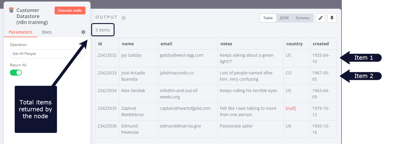 某些节点传入的数据结构可能与n8n使用的数据结构不同。在这种情况下,您需要转换数据,以便可以单独处理每个项目。