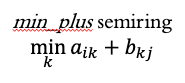 从概念上讲,min_plus 半环取一个节点的值,将其加到边的权重上,并在接收节点收集值时,取最小的值。