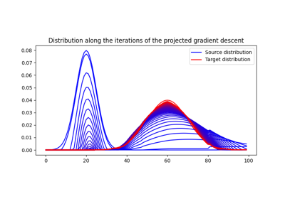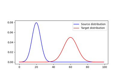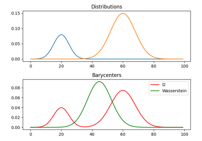 使用 PyTorch 的 Wasserstein 1D(流和重心)