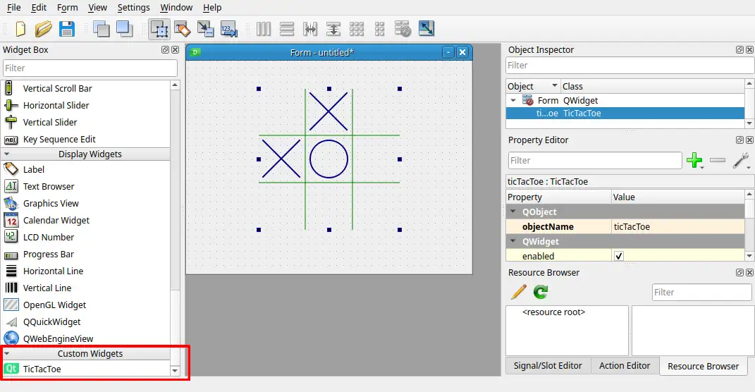QPyDesignerCustomWidgetCollection.addCustomWidget(TicTacToePlugin())