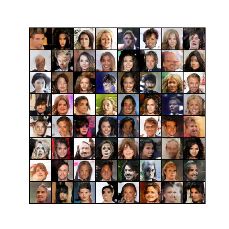 还记得我们如何在每个训练周期后将生成器的输出保存在fixed_noise批次上吗?现在,我们可以通过动画来可视化G的训练进展。按下播放按钮开始动画。